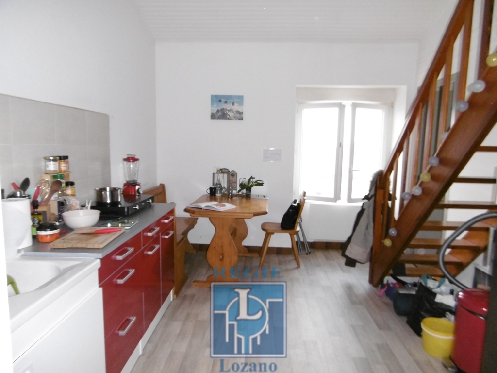 Dans l'hyper-centre de Saint JEAN DE TOUSLAS, dans une ancienne maison de ville qui donne sur la place du village , nous vous proposons un joli T2 entièrement rénové au 1er étage. Ce petit T2 de 24.87 m2 est particulièrement bien agencé pour sa taille, avec une vraie chambre séparée, une pièce principale /cuisine/salle à manger doté d'une mezzanine pour un coin salon ainsi qu'une salle d'eau avec douche et WC. A noter au niveau de la mezzanine un immense placard sous combles de plusieurs mètres carrés qui permet d'avoir un vrai espace de rangement.